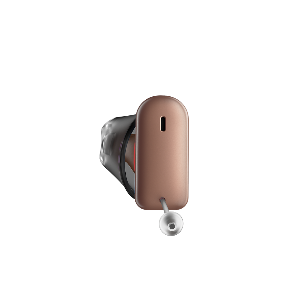 Wiederaufladbare Im-Ohr-Variante im dezenten Ear-Bud-Design mit Bluetooth. Die Geräte werden mit Silikonschirmchen im Gehörgang gehalten. Alternativ kann eine aufsteckbare Maßanfertigung genutzt werden.